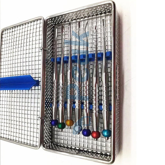 Ensemble d'ostéotomes dentaires convexes avec plateau de stérilisation